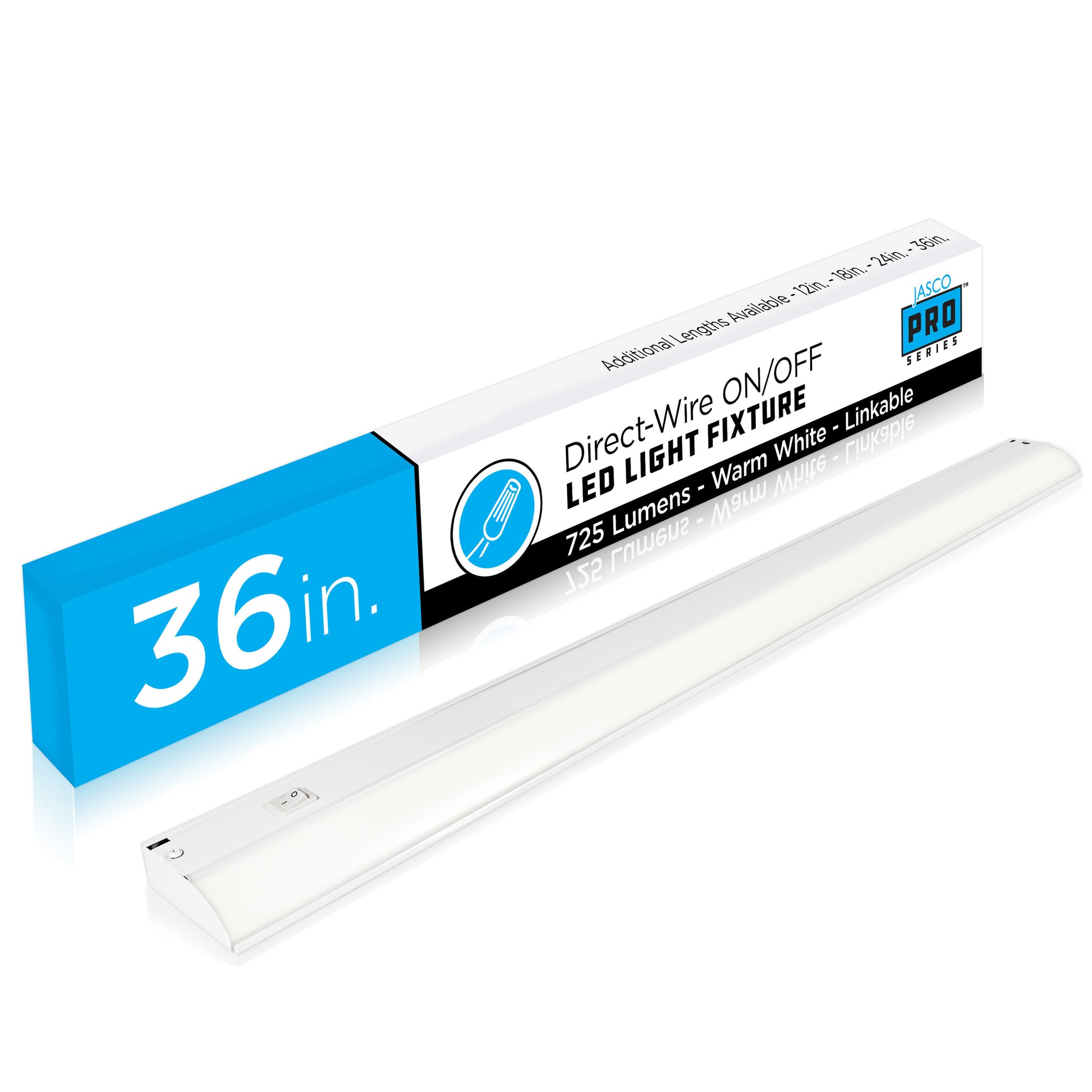 - JascoPro Series™ Fixture – Emits 726 lumens of soft white light (3000K) to enhance the look of any space and lighting system — ideal for upgrading kitchens, pantries, laundry rooms, offices and more