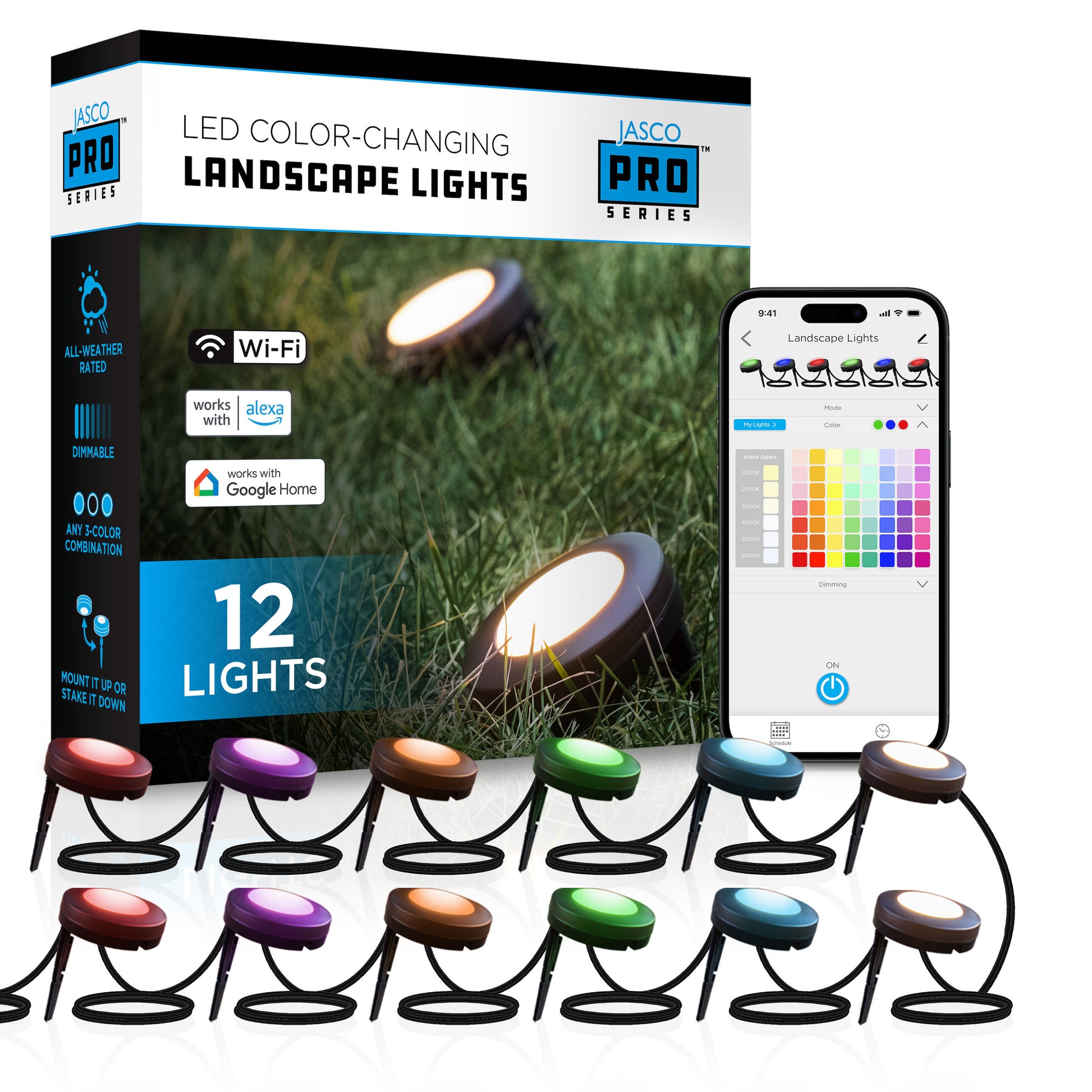 - Smart Landscape Lighting – Control and customize these professional-quality landscape lights with the free JascoPro app using a Wi-Fi or Bluetooth connection — available on the Apple App Store and on Google Play (2.4GHz Wi-Fi required to pair)